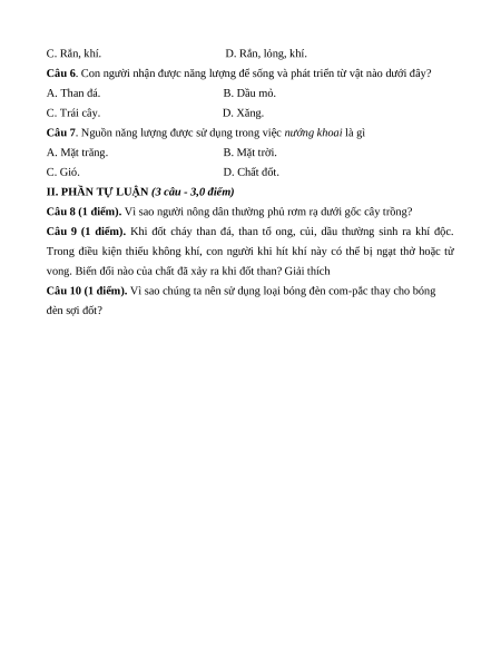+ Phần tự luận: 3,0 điểm (Mức 1: 2,0 điểm; Mức 2: 1,0 điểm).