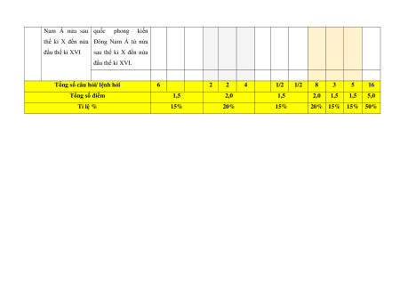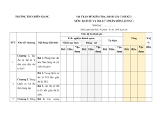Trắc nghiệm khách quan Tổng Tỉ lệ Chủ đề/ Nội dung Tự luận STT Nhiều lựa chọn Đúng - sai % chương kiến thức Vận Vận Vận Vận điểm Biết Hiểu Biết Hiểu Biết Hiểu Biết Hiểu dụng dụng dụng dụng Quá trình hình thành và phát triển của 2 1 1 2 1 1 20% Chương chế độ phong (0.5đ)