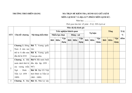 Thời gian làm bài: 45 phút - Tỉ lệ: 50% Lịch sử