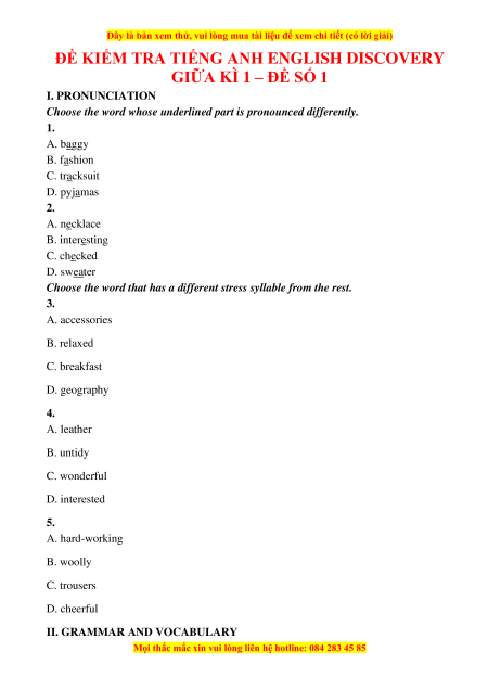 ĐỀ KIỂM TRA TIẾNG ANH ENGLISH DISCOVERY
