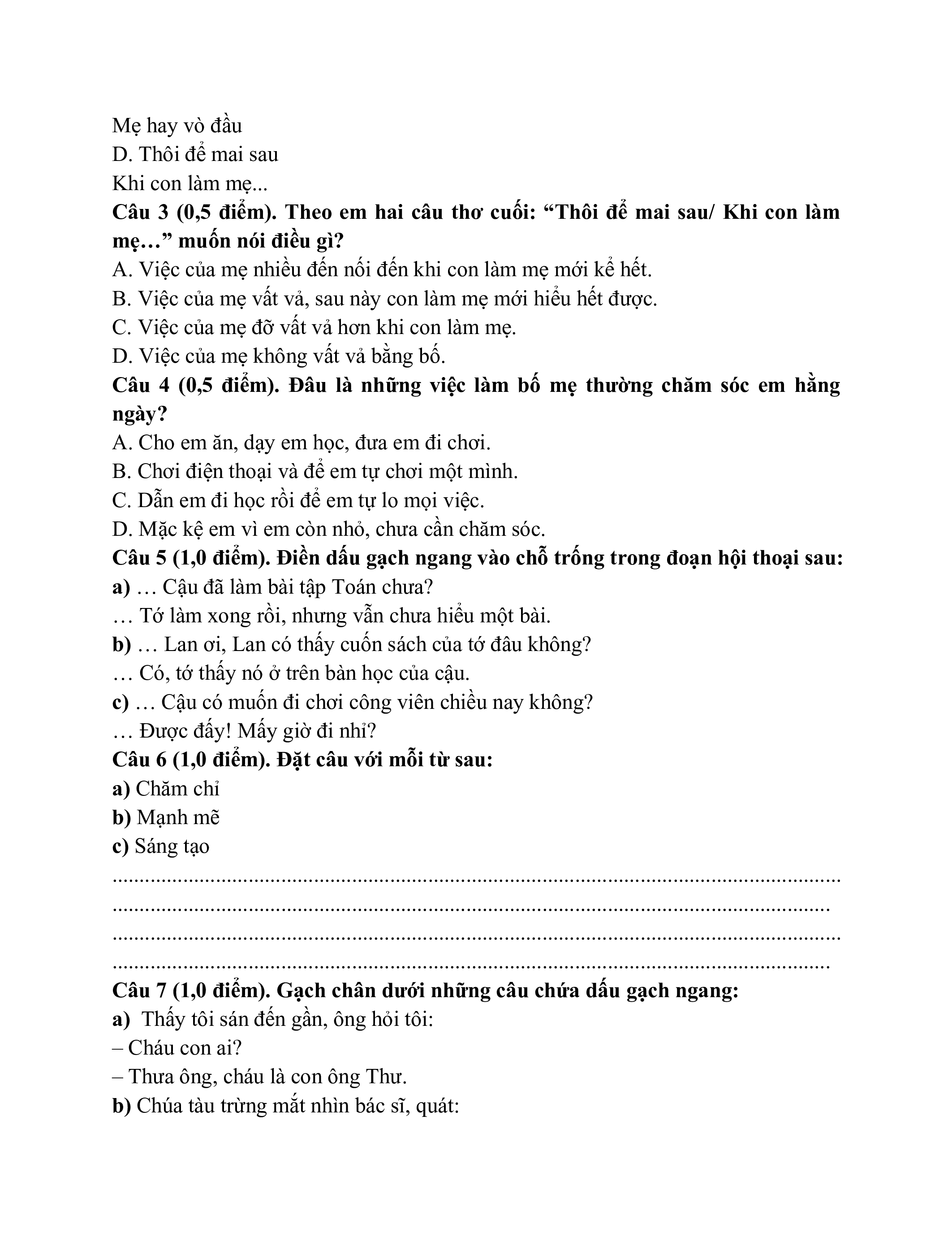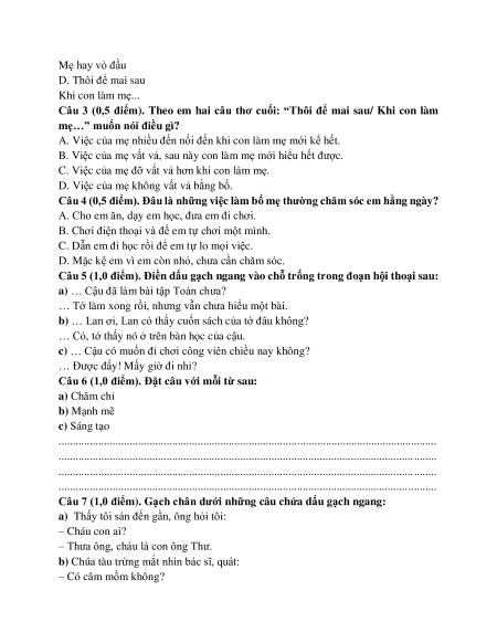 Câu 3 (0,5 điểm). Theo em hai câu thơ cuối: “Thôi để mai sau/ Khi con làm