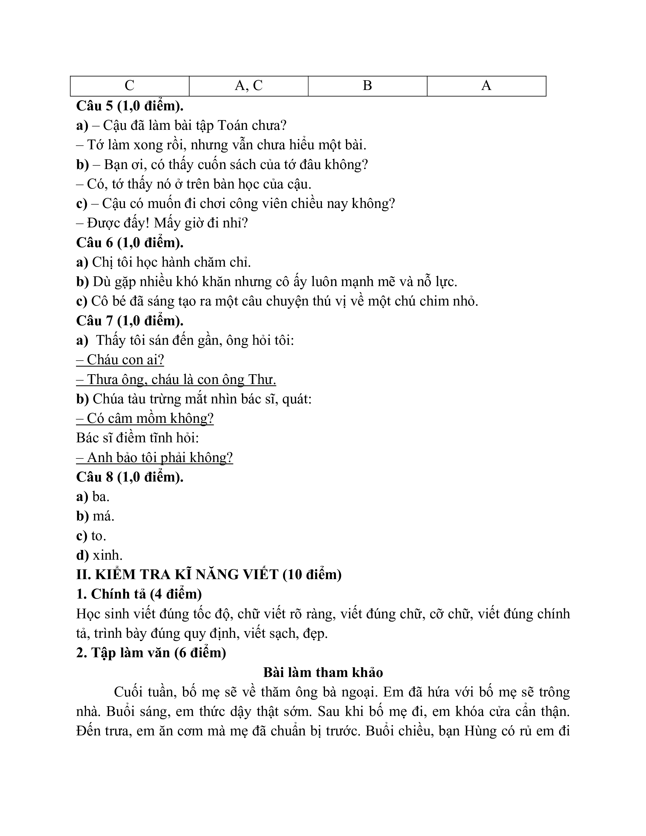 2. Kiểm tra đọc hiểu và kiến thức Tiếng Việt (6 điểm)