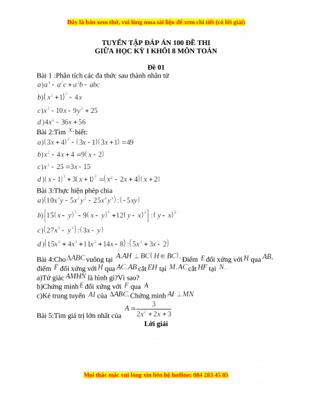 GIỮA HỌC KỲ I KHỐI 8 MÔN TOÁN Đề 01