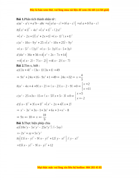 Bài 1.Phân tích thành nhân tử : Bài 2.Tìm x, biết :