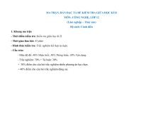 + 40% điểm cho câu hỏi trắc nghiệm đúng sai. Mức độ đánh giá Tổng Tỉ lệ TT Chương/ chủ TN nhiều lựa TN dạng đề Đơn vi kiên thức % chọn Đúng/Sai Tự luận điểm