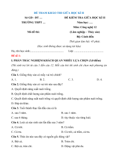 Bộ đề thi Giữa kì 2 Công nghệ 12 Cánh diều có đáp án