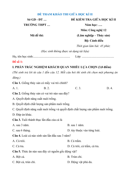 - Tailieugiaovien.com.vn giới thiệu bộ đề Giữa kì 2 gồm Điện Điện tử + Lâm nghiệp Thủy sản và đầy đủ ma trận, lời giải chi tiết môn Công nghệ 12 Cánh diều mới nhất năm 2025 nhằm giúp Giáo viên có thêm tài liệu tham khảo ra đề thi Công nghệ 12.