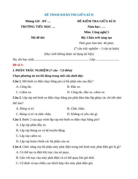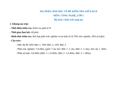 - Tailieugiaovien.com.vn giới thiệu bộ 2 đề giữa kì 2 gồm đầy đủ ma trận và lời giải chi tiết môn Công nghệ lớp 5 Chân trời sáng tạo mới nhất năm 2025 nhằm giúp Giáo viên có thêm tài liệu tham khảo ra đề thi Công nghệ lớp 5.