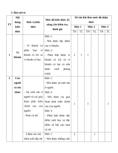 năng cần kiểm tra, kiến thức Mức 1 Mức 2 Mức 3 đánh giá thức TN TL TN TL TN TL Mức 1: