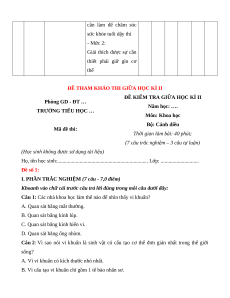 TRƯỜNG TIỂU HỌC … Môn: Khoa học Bộ: Cánh diều Mã đề thi: