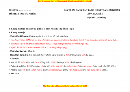 1. Khung ma trận đề kiểm tra giữa kì II môn Khoa học tự nhiên - lớp 6