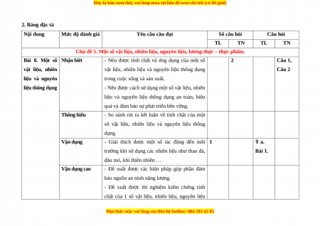 Chủ đề 8. Đa dạng thế 1 5 32,5 3 1 1 1 giới sống (2 điểm) (1,25 điểm) % 1 4 Chủ đề 9. Lực 1 2 1 1 20% (1 điểm) (1 điểm) 1 1 12,5