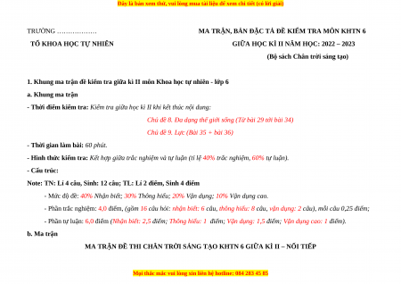 MA TRẬN ĐỀ THI CHÂN TRỜI SÁNG TẠO KHTN 6 GIỮA KÌ II – NỐI TIẾP