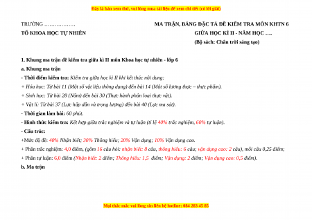 1. Khung ma trận đề kiểm tra giữa kì II môn Khoa học tự nhiên - lớp 6