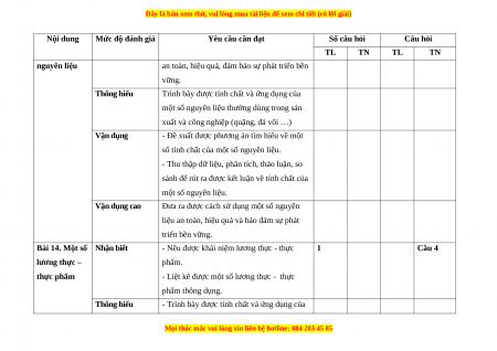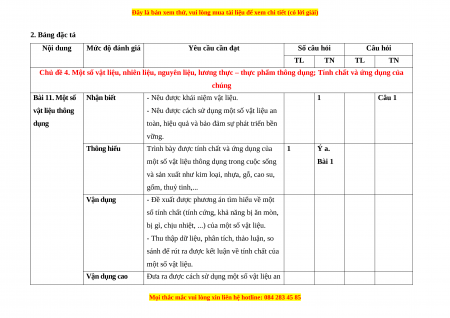 2. Bảng đặc tả Nội dung Mức độ đánh giá Yêu cầu cần đạt Số câu hỏi Câu hỏi TL TN TL TN