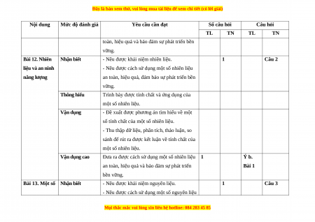 + Phần tự luận: 6,0 điểm (Nhận biết: 2 điểm; Thông hiểu: 1,5 điểm; Vận dụng: 2 điểm; Vận dụng cao: 0,5 điểm). b. Ma trận