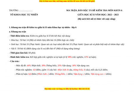 1. Khung ma trận đề kiểm tra giữa kì II môn Khoa học tự nhiên - lớp 6