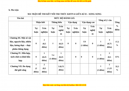 1. Khung ma trận đề kiểm tra giữa kì II môn Khoa học tự nhiên - lớp 6 a. Khung ma trận