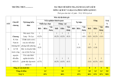 Trắc nghiệm khách quan Tổng Tỉ lệ Chủ đề/ Nội dung kiến Tự luận STT Nhiều lựa chọn Đúng - sai % chương thức Vận Vận Vận Vận điểm Biết Hiểu Biết Hiểu Biết Hiểu Biết Hiểu dụng dụng dụng dụng Nhà nước Văn 1 1 1 2 1 2 1 3 Chương Lang - Âu Lạc (0,25) (0,25) (0,25) (0,5) (0,5) (0,5) (0,25) (1,0) 5. Việt Chính sách cai trị Nam từ của các triều đại 2 1 2 1