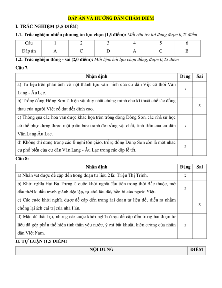 Câu 2 (1,0 điểm): Dưới thời kì Bắc thuộc, các triều đại phong kiến phương Bắc thực hiện chính sách