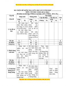 MA TRẬN ĐỀ KIỂM TRA GIỮA HỌC KÌ II NĂM HỌC ........................