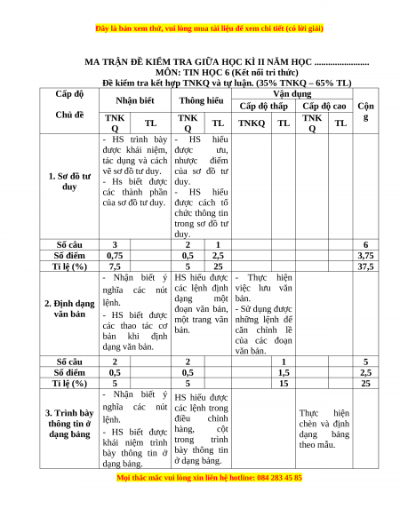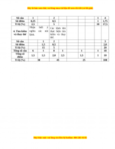 của sơ đồ tư duy. được cách tổ chức thông tin trong sơ đồ tư duy. Số câu 3 2 1 6 Số điểm 0,75 0,5 2,5 3,75 Tỉ lệ (%) 7,5 5 25 37,5