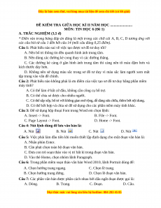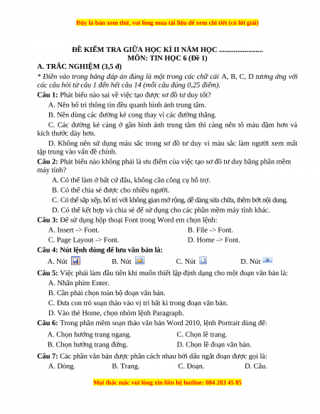 MÔN: TIN HỌC 6 (Đề 1) A. TRẮC NGHIỆM (3,5 đ)