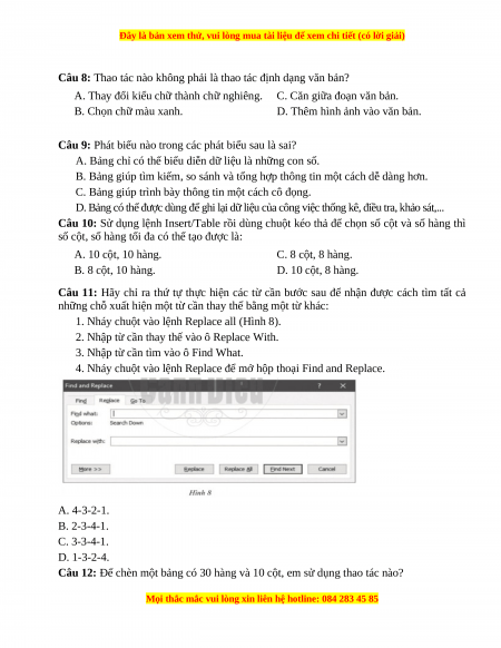 Câu 11: Hãy chỉ ra thứ tự thực hiện các từ cần bước sau để nhận được cách tìm tất cả