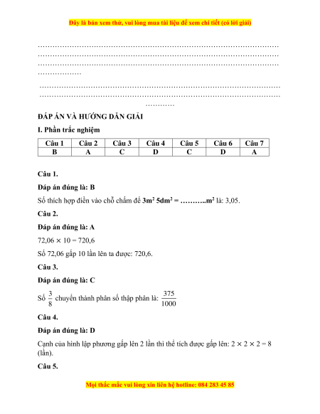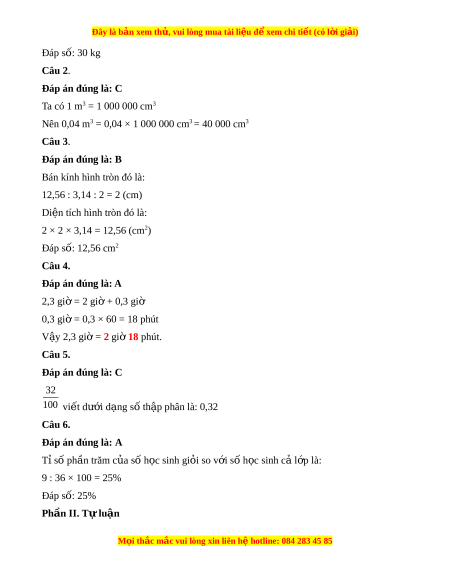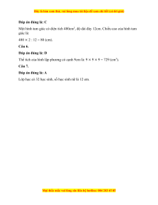 ệ đ xe ể m chi ti t ế (có l i ờ gi i ả ) Đáp số: 30 kg Câu 2. Đáp án đúng là: C Ta có 1 m3 = 1 000 000 cm3