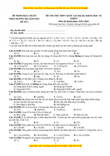 Câu 41:(NB) Kim loại nào sau đây có khối lượng riêng nhỏ nhất (nhẹ nhất)? A. Cs. B. Li. C. Os. D. Na.