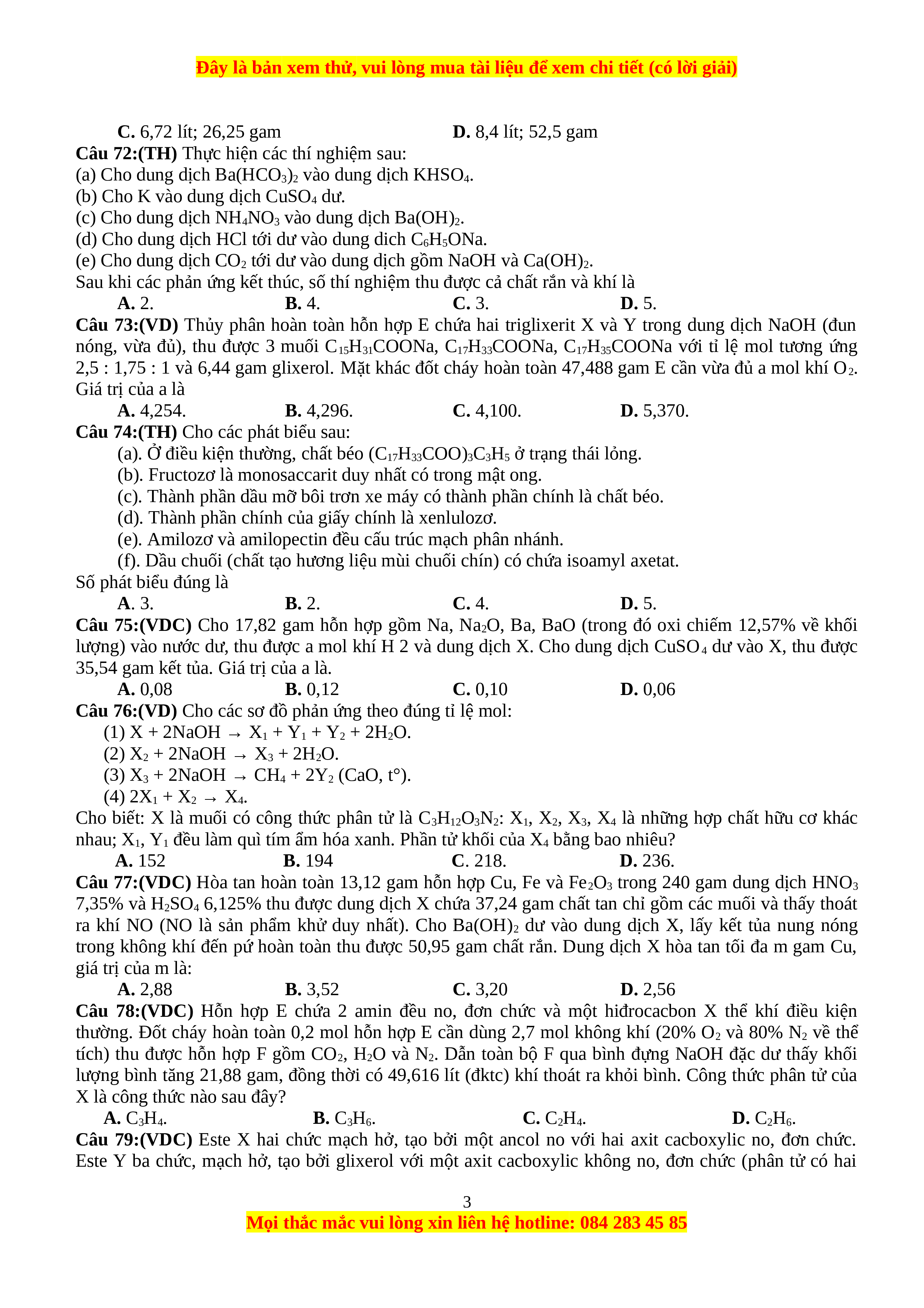 Câu 73:(VD) Thủy phân hoàn toàn hỗn hợp E chứa hai triglixerit X và Y trong dung dịch NaOH (đun