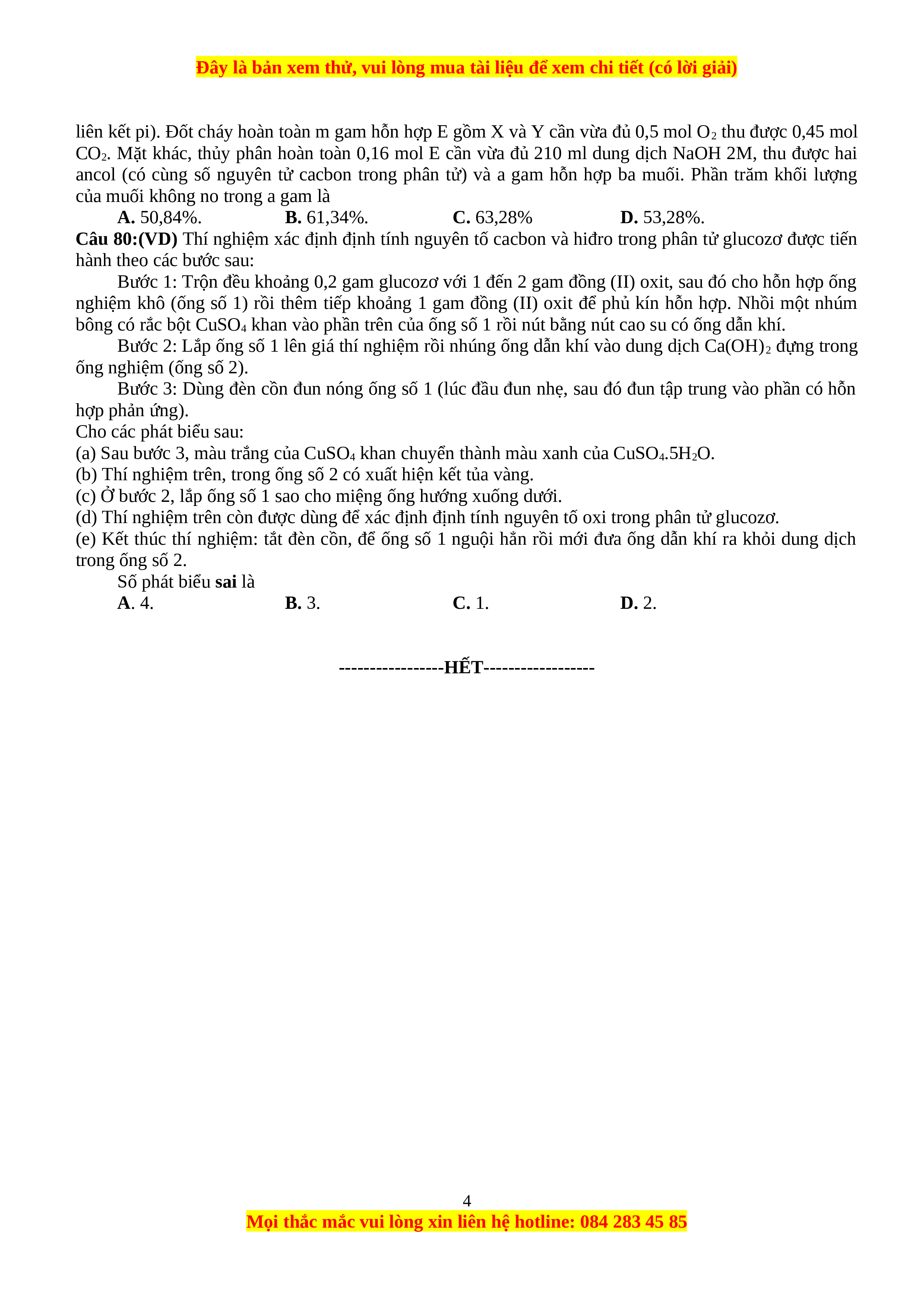 Câu 79:(VDC) Este X hai chức mạch hở, tạo bởi một ancol no với hai axit cacboxylic no, đơn chức.