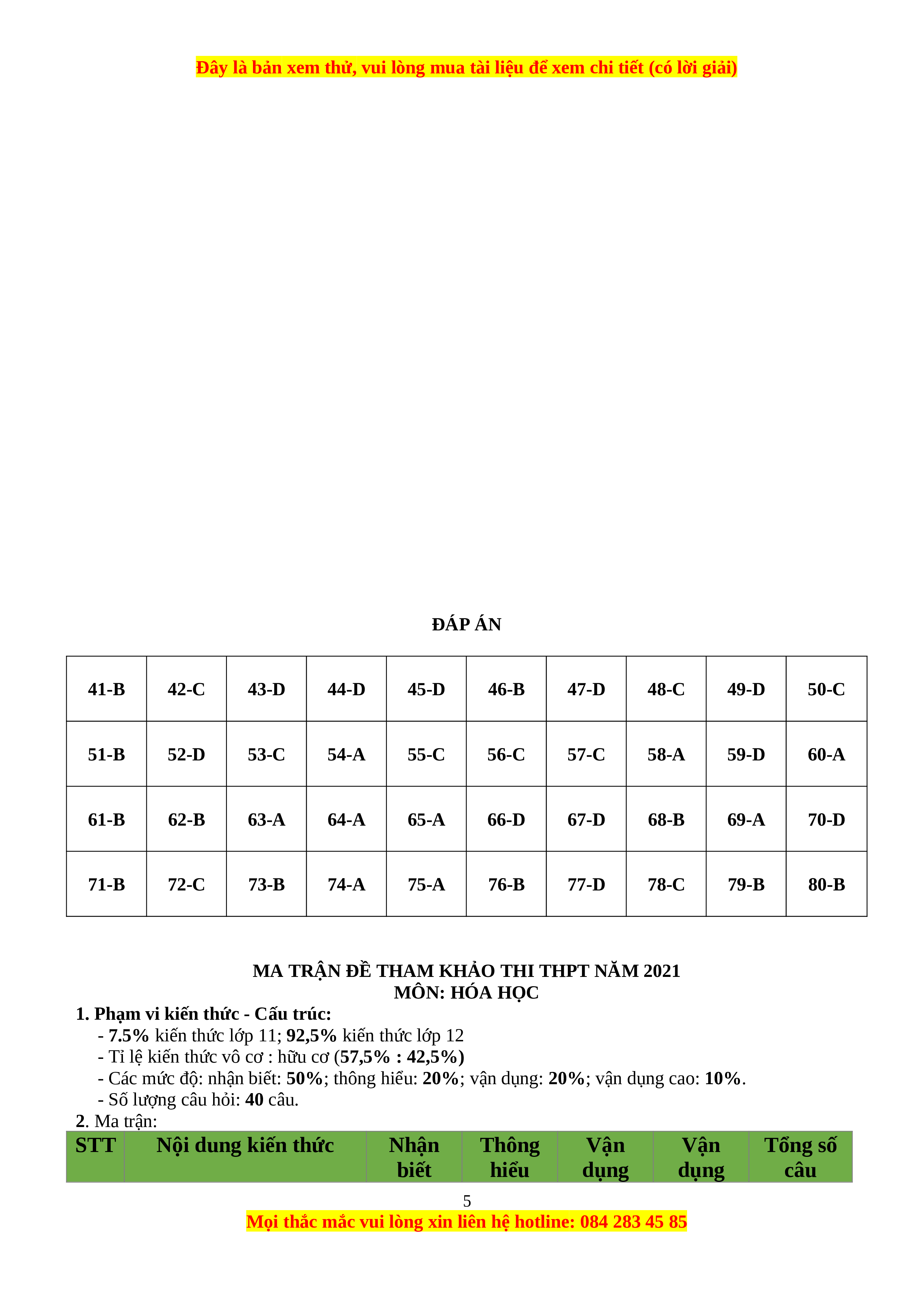 - Tỉ lệ kiến thức vô cơ : hữu cơ (57,5% : 42,5%)