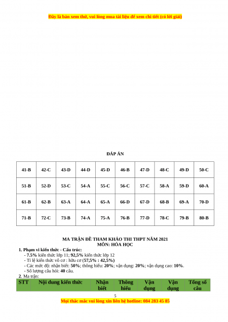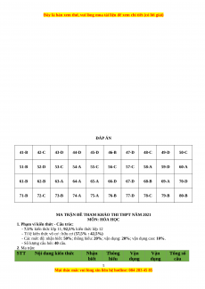 MA TRẬN ĐỀ THAM KHẢO THI THPT NĂM 2021