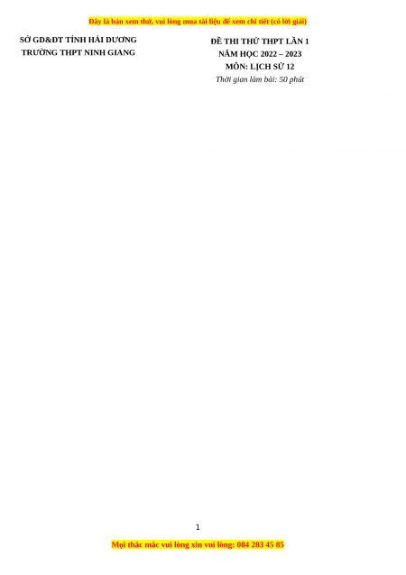 NĂM HỌC 2022 – 2023 MÔN: LỊCH SỬ 12