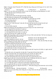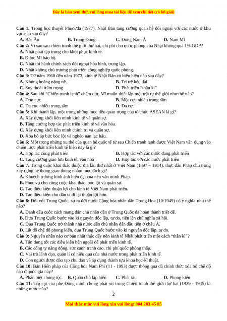 Câu 1: Trong học thuyết Phucưđa (1977), Nhật Bản tăng cường quan hệ đối ngoại với các nước ở khu vực nào sau đây? A. Bắc Âu B. Trung Đông C. Đông Nam Á D. Nam Mĩ