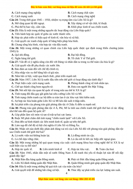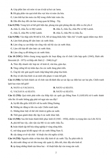 Câu 17 (VD): Trong bối cảnh thế giới bị phân chia làm “hai cực”, “hai pheº nguyên tắc hoạt động nào