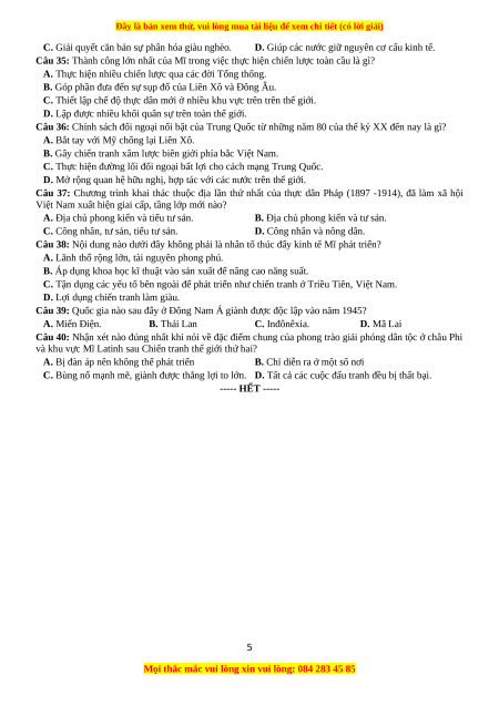 Câu 19: Nguồn gốc sâu xa dẫn đến tình trạng “chiến tranh lạnh” giữa hai siêu cường Xô - Mĩ là gì?