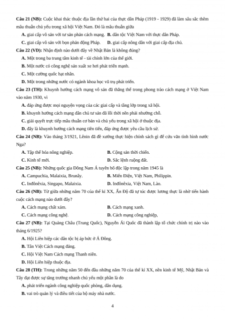 Câu 21 (NB): Cuộc khai thác thuộc địa lần thứ hai của thực dân Pháp (1919 - 1929) đã làm sâu sắc thêm