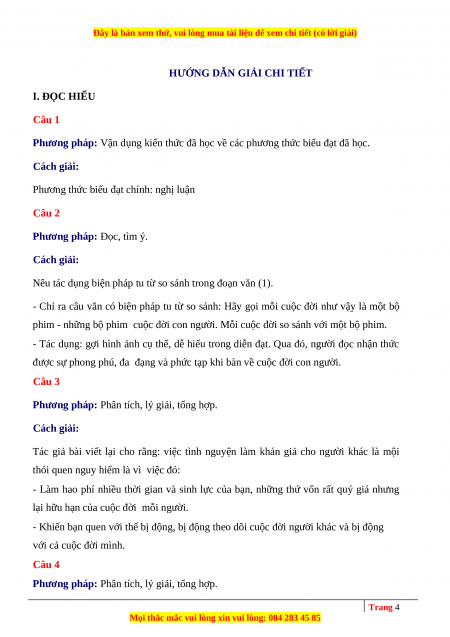 HƯỚNG DẪN GIẢI CHI TIẾT I. ĐỌC HIỂU Câu 1