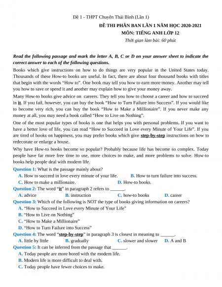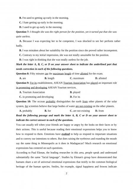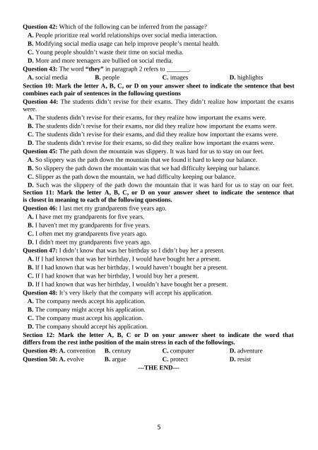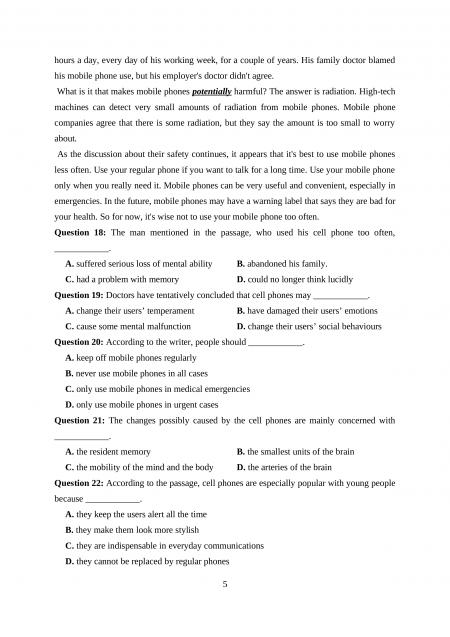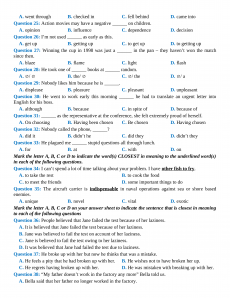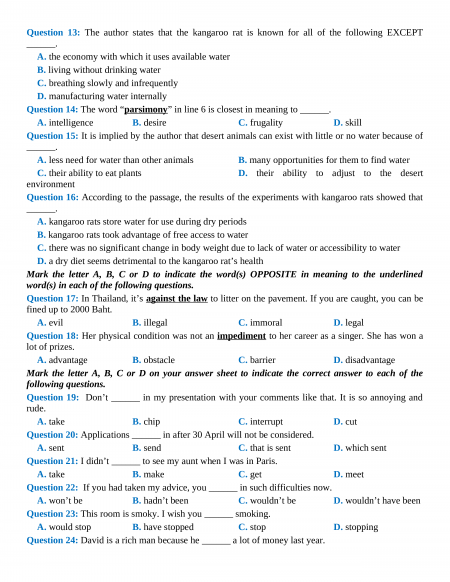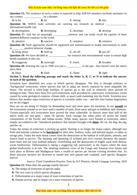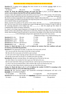 Section 5: Read the following passage and mark the letter A, B, C, or D to indicate the answer to each of the question.