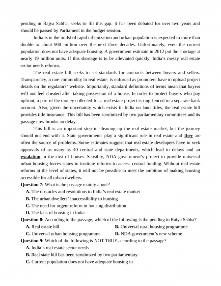 Section 7: Read the following passage and mark the letter A, B, C, or D on your answer sheet to