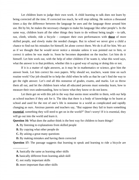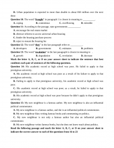 Section 9: Read the following passage and mark the letter A, B, C, or D on your answer sheet to
