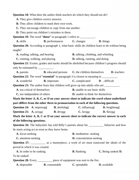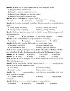 Question 6: A. academic B. behave C. grade D. examination