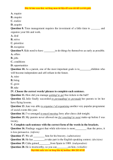 Question 8. Time management requires the investment of a little time to _______ and organize your life and work. A. deal B. strive C. prioritise D. recognize