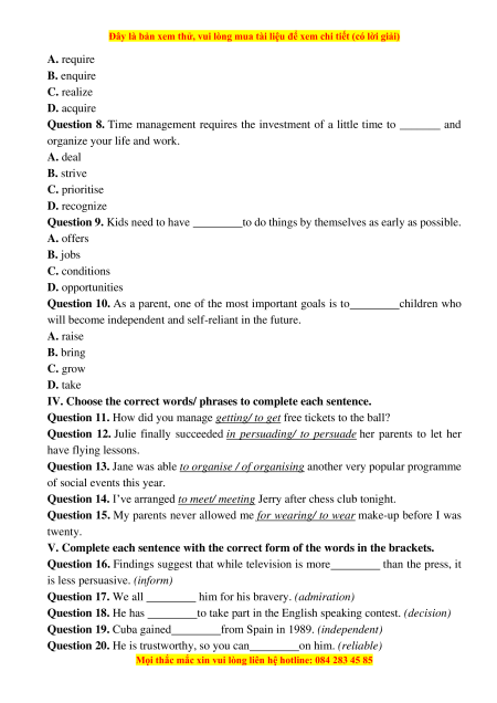 Question 12. Julie finally succeeded in persuading/ to persuade her parents to let her have flying lessons.