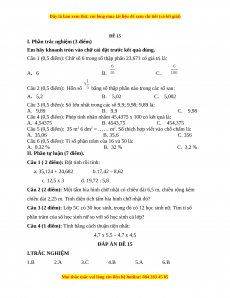Câu 1 (0,5 điểm): Chữ số 6 trong số thập phân 23,671 có giá trị là: A. 6 B. C.