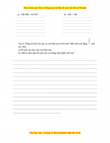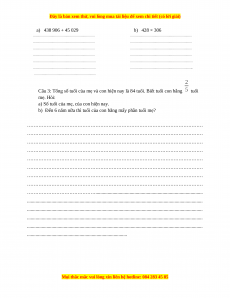 Câu 3: Tổng số tuổi của mẹ và con hiện nay là 84 tuổi. Biết tuổi con bằng tuổi