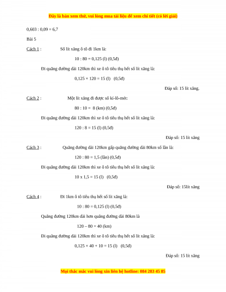0,603 : 0,09 = 6,7 Bài 5 Cách 1 :