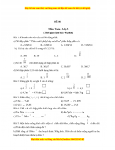 - Tailieugiaovien.com.vn giới thiệu bộ 50 đề thi Toán 5 Học kì 1 có lời giải chi tiết, mới nhất năm 2022 - 2023 nhằm giúp Giáo viên có thêm tài liệu tham khảo ra đề thi Toán lớp 5.